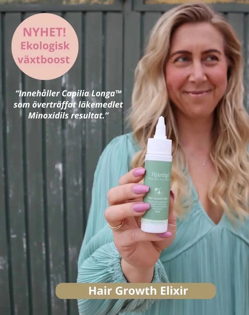 Hjärtligts Hair Growth Elixir är en riktig booster för hårsäckarna.Håret växer ut starkare än någonsin. Perfekt för dig som lider av håravfall eller för dig som vill förbättra hårkvalitén.